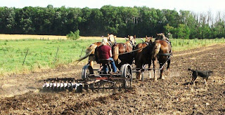 These Montana Horses are learning as I began some practical applications working the field. This helps build their team work, skill learning and experience. The weather here today in Minnesota was perfect as I got the team out doing field work. Plus, my field needed plowing too...